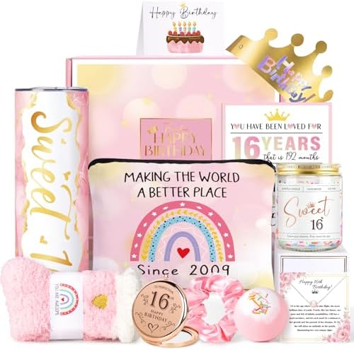 View full detailsSweet 16 Gifts for Girls, 16th Birthday Gifts for Girls, Gifts for 16 Year Old Girl, 11 PCS Unique Trendy Sweet Sixteen Gift for Daughter Her, Beautiful Girl 16th Gift, Pink