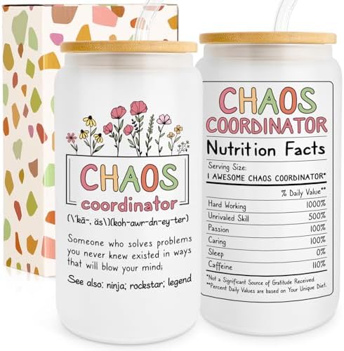 View full detailsThank You Gifts for Chaos Coordinator, Boss Lady Gifts for Women, Teacher Appreciation Gifts, Inspiration Work Gifts for Coworkers, Employees, Manager, Nurse on Birthday Christmas - 18 Oz Can Glass