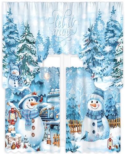 View full detailsChristmas Kitchen Curtains 3 Piece Set Blue Snowman Window Curtains and Valance Set Xmas Curtain Swag for Kitchen Bedroom Living Room Decor, 60 x 36 Valance, 36 x 30 Tier