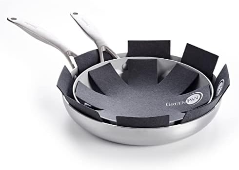 SET INCLUDES: 8" frying pan, 9.5" frying pan, and 11" frying pan CUTTING-EDGE CERAMIC NONSTICK: Infused with diamonds, GreenPan's metal uten...