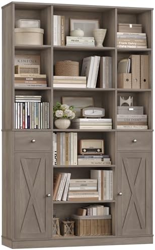 View full detailsHOSTACK 71" Tall Bookcase with Drawers and Doors, 47" Wide Book Shelf and Bookcase with Storage, 6 Tier Large Book Storage Cabinet with 14" Deep Display Shelves for Living Room, Home Office, Ash Grey