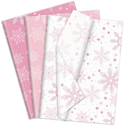 View full detailsJarThenaAMCS 120 Sheets Winter Christmas Tissue Paper Pink White Snowflake Wrapping Paper for Xmas Home Party DIY Crafts Supplies, 14 x 20 Inch