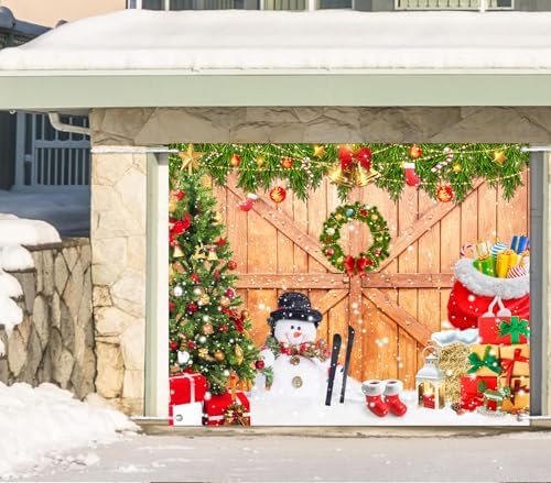 View full detailsChristmas Garage Door Cover 7 x 9 Ft Wood Texture Board Door Cover Large Xmas Tree Snowman Yard Sign for Winter Indoor Outdoor Home Party Decor