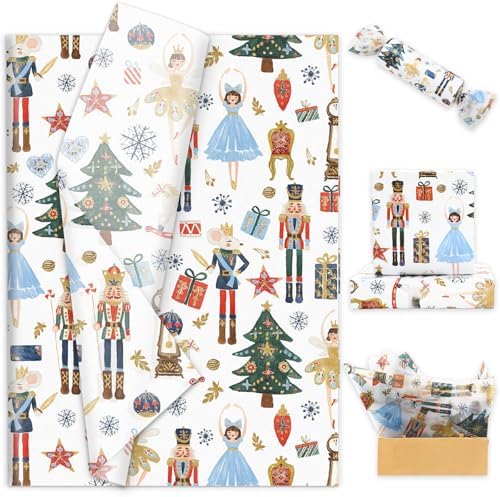 View full detailsJarThenaAMCS 100 Sheets Christmas Tissue Paper Nutcracker Gift Wrapping Paper for DIY Arts Crafts Xmas Holiday Birthday Party, 14 x 20 Inch