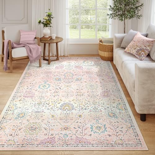 View full detailsLahome Large Rugs for Living Room, Boho Machine Washable Area Rugs 8x10, Ultra-Thin Soft Distressed Floral Carpets Non Slip for Bedroom Office Dining Room, Pink/Multi