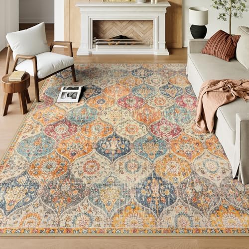 View full detailsLahome Moroccan Washable Area Rugs 9x12 Living Room, Soft 9x12 Area Rug for Bedroom, Oriental Non-Slip Non Shedding Throw Large Carpet for Dining Room Office, Cream/Multi