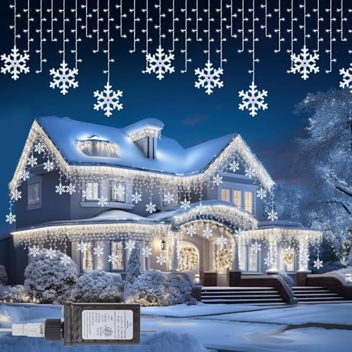 Snowflake Icicle Lights Outdoor: Our christmas Icicle lights has 6 PCS 7.8inch large snowflakes, With a staggered distribution that resembles re...