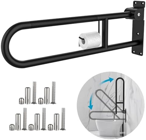 View full detailsToilet Grab Bar 30.3 Inch Black, Munzong Anti-Slip Handicap Grab Bars with Paper Holder, Flip-Up Bathroom Safety Rails, Stainless Steel Knurled Support handrails for Seniors Elderly Disabled Pregnant