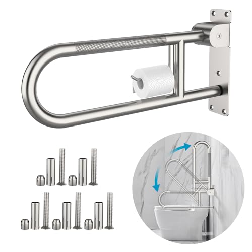 View full detailsToilet Grab Bar 30.3 Inch, Munzong Anti-Slip Handicap Grab Bars with Paper Holder, Flip-Up Bathroom Toilet Safety Rails, Stainless Steel Knurled Support handrails for Seniors Elderly Disabled Pregnant