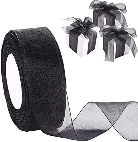 View full detailsOutus Sheer Organza Ribbon for Gift Wrapping Chiffon Tulle Mesh Ribbon Clear Weeding Christmas Tree Decor DIY Crafts(1.6 Inch Wide 49 Yard Long,Black)