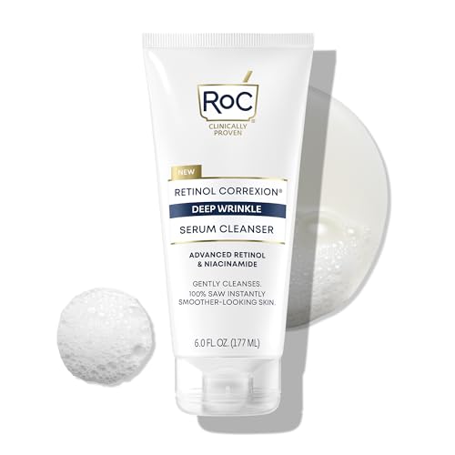 View full detailsRoC Retinol Correxion Deep Wrinkle Serum Facial Cleanser with Niacinamide for Anti-Aging and Fine Lines, Long-Wear Makeup Remover, Fragrance Free Skin Care, Opthalmologist Tested, 6 Ounces