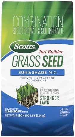View full detailsScotts Turf Builder Grass Seed Sun & Shade Mix with Fertilizer and Soil Improver, Thrives in Many Conditions, 5.6 lbs.