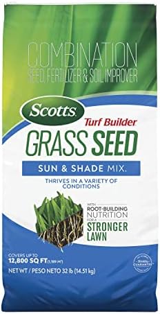 View full detailsScotts Turf Builder Grass Seed Sun & Shade Mix with Fertilizer and Soil Improver, Thrives in Many Conditions, 32 lbs.