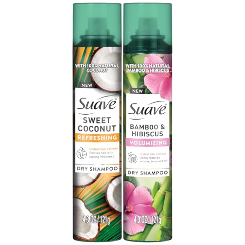 View full detailsSuave Dry Shampoo Spray Variety 2-Pack – Volumizing Bamboo & Hibiscus, Refreshing Sweet Coconut, 4.3 Oz Ea