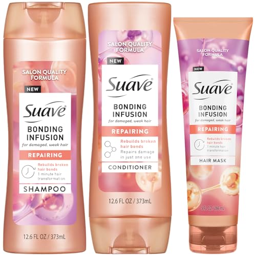 View full detailsSuave Bonding Infusion Shampoo, Conditioner & Hair Mask, Restorative Treatment for Dry, Damaged Hair (3 Piece Set)