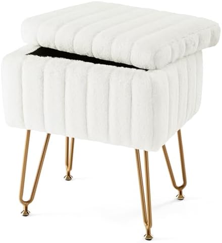 View full detailsSweetcrispy Vanity Stool Chair with Storage, Ottoman Faux Fur Soft Padded Makeup Footstools Seat with 4 Metal Legs Anti-Slip Adjustable Feet for Home Entryway Bedroom, White