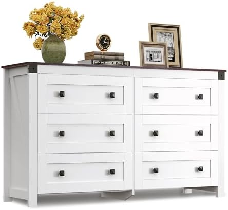 View full detailsWLIVE Farmhouse 6 Drawer Dresser for Bedroom, 53.07'' Wide Wood Dresser, White Dressers Storage Organizer with Double Rustic Handle, TV Stand for 60 inch TV, Chest of Drawers for Living Room, Hallway