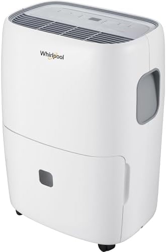 View full detailsWhirlpool 50-Pint Portable Dehumidifier for Basement, Garage, and Living Room, 115V, Dehumidifier for Rooms up to 4500 Sq. Ft. with Energy Star Certification, Auto-Shutoff, and Timer in White