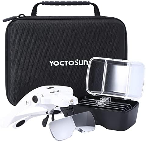 Brand: YOCTOSUNColor: Black With Storage CaseFeatures: Headband Magnifier with Storage Case: The magnifying glasses comes with interchangeable mag...