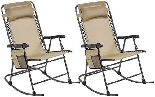 View full detailsYaheetech 26in Rocking Chair Outdoor Zero Gravity Folding Chairs Rocking Chairs Foldable Outdoor Reclining Lounge Chair for Outside Lawn with Cupholder/Pillow Ergonomic Design for Rest, Beige