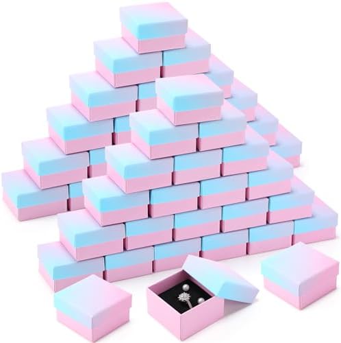 Yinkin 72 Pcs Jewelry Ring Gift Boxes Bulk 2 x 2 x 1.2 Inch Ring Necklace Earring Boxes for Weddings Christmas