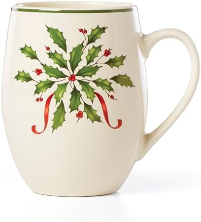 View full detailsLenox Coffee Mug, 18 Oz Holiday Cocoa Mug Set, Stoneware Material, Microwave and Dishwasher Safe, Christmas Holly Drinkware Set, Christmas Decorations, Holly Design (Red/Green, 18 Oz, 1 Piece)