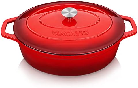 View full detailsvancasso Enameled Cast Iron Dutch Oven, 9.3 Quart Dutch Oven Pot with Lid, Oval Dutch Oven Cast Iron Pot with Non Stick Enamel Coating for Bread Baking, Red