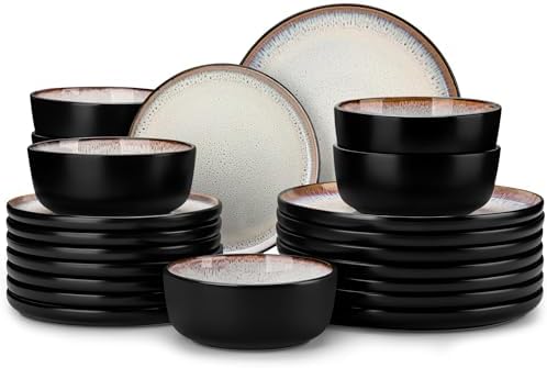View full detailsvancasso Plates and Bowls Sets, 24 Pieces Stoneware Dinnerware Sets for 8, Kitchen Dish Set Mircowave and Dishwasher Safe Dinner Set Ceramic Dishware, Light Cream, Series AMBER
