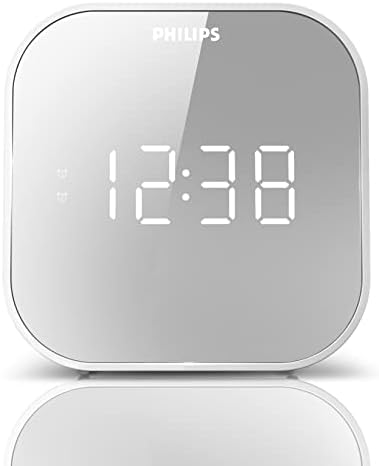 PHILIPS FM Radio Alarm Clock with USB Charging Port, Battery Backup for Bedroom, Dual Function, Sleep Timer, Easy Snooze and Mirror-Finish Display