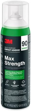View full details3M Max Strength 90 Multi-Surface Contact Adhesive, 12.6 oz., Low VOC, Max Bond, Heat & Water Resistant, Adjstable Spray for Metal, Wood, Plastics, Laminates, and Concrete (99-NAT)