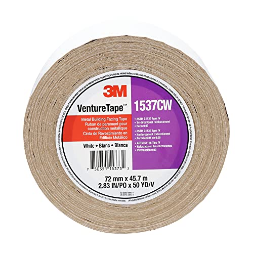 3M Metal Building Facing Tape 1537CW, White, 72 mm x 45.7 m (Pack of 1)
