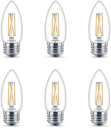 View full detailsPHILIPS LED Clear Non-Dimmable B11 Light Bulb - Pack of 6 - EyeComfort Flicker Free - 3.3W = 40W - 300 Lumen - Soft White (2700K) - E26 Base - Indoor - Title 20