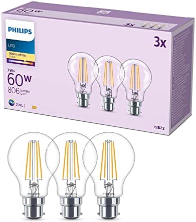 PHILIPS LED A60 Light Bulb 3 Pack [Warm White 2700K - B22 Bayonet Cap] 60W, Non Dimmable. for Home Lighting, 929001387493