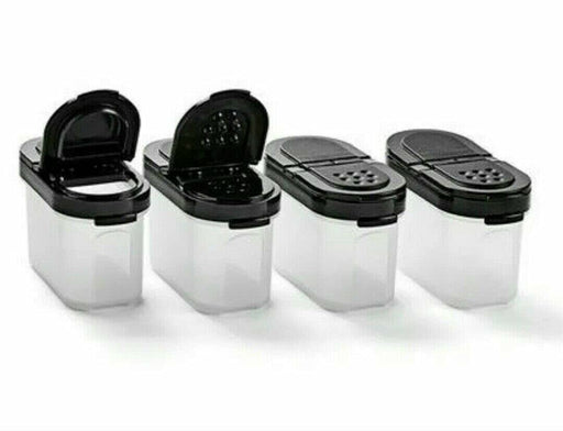 Plastic Tupperware Black Seals Modular Mates Spice Containers Salt and Pepper Shakers Versatile hinged seals, one sideshakes, one side o...