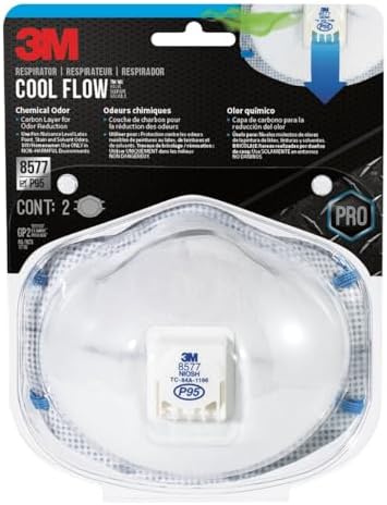 View full details3M P95 Particulate Respirator 8577, 2 Pack, Carbon Layer For Odor Reduction, Features COOL FLOW Exhalation Valve, NIOSH-APPROVED, Advanced Filter Media For Easy Breathing, Comfortable (8577C2-DC-PS)