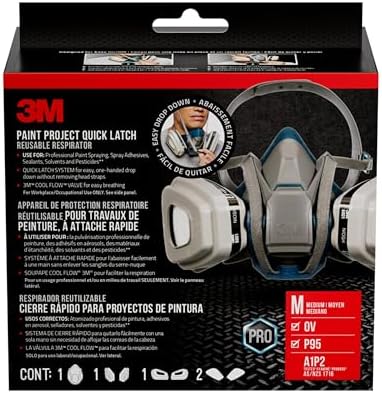 View full details3M P95/OV Paint Project Quick Latch Reusable Respirator 6502QL, Medium Size, NIOSH-APPROVED Organic Vapor Cartridge & P95 Rated Filters, With 3M Cool Flow Valve & Quick Latch System (6502QLPA1-A-PS)