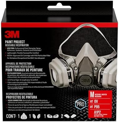 View full details3M P95/OV Paint Project Reusable Respirator 6211, Medium Size, NIOSH-APPROVED Organic Vapor Cartridge & P95 Rated Filters, Lightweight, Flexible, Thermoplastic Faceseal For Comfort (6211P1-DC)