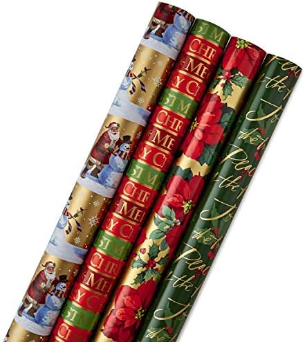 View full detailsHallmark Reversible Christmas Wrapping Paper Bundle, Traditional (Pack of 4, 150 sq. ft. ttl.)