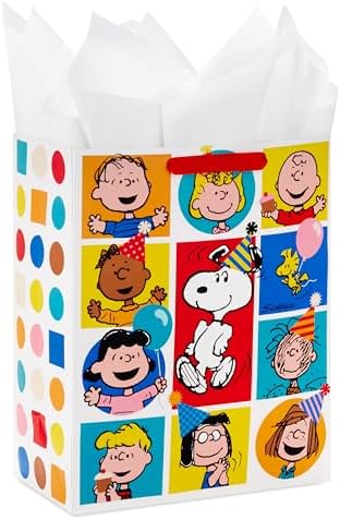 View full detailsHallmark Peanuts 13" Large Gift Bag with Tissue Paper (Snoopy, Charlie Brown, Linus, Lucy) for Birthdays, Christmas, Fans