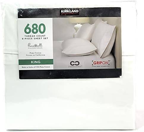 Kirkland Signature King Bright White 680 Thread Count Sheet Set 6 Piece Deep Pockets
