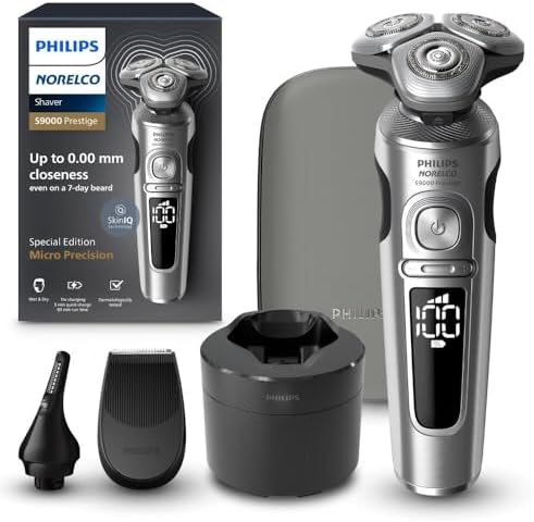 View full detailsPhilips Norelco Shaver i9000 Prestige Ultra, Wet & Dry Electric Shaver, Adriatic, SenseIQ Pro Technology, Triple Lift & Cut System, 360 Rotating NanoTech Precision Blades, Precision Trimmer, XP9401/92