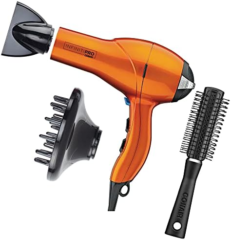 View full detailsINFINITIPRO by CONAIR Hair Dryer with Diffuser | Salon Performance AC Motor Blow Dryer | Includes Diffuser, Concentrator and Bonus Blow-Out Brush | Orange | Packaging May Vary