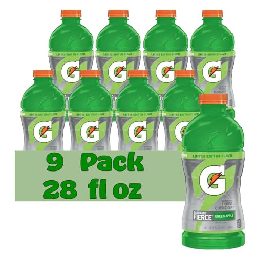 View full detailsGatorade Green Apple Thirst Quencher Electrolyte Enhanced Sports Drink 28 fl oz Plastic Bottle 9 Pack