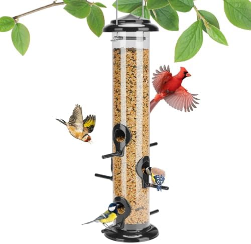 View full detailsKingsyard Metal Bird Feeders for Outdoors Hanging, Tube Bird Feeder with 6 Feeding Ports, 15 Inch, Chew-Proof & Weatherproof, Black