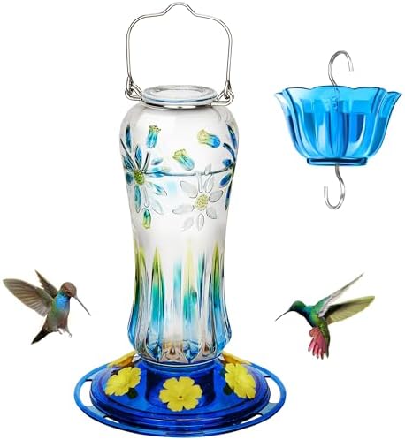 View full detailsKingsyard Hummingbird Feeder for Outdoors Hanging, 25 Ounces, Glass Humming Bird Nectar Feeder with Ant Moat & 6 Feeding Ports, Leak Proof, Blue
