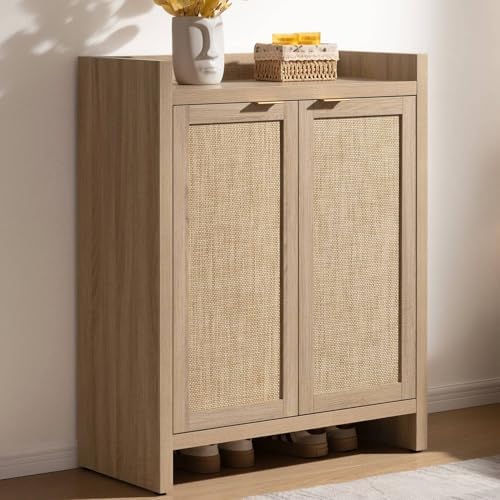 View full detailsSICOTAS Shoe Storage Cabinet, 30 Pairs Rattan Shoe Cabinet Storage for Entryway, 6-Tier 41" Tall Large Shoe Cabinet, Boho Farmhouse Cabinet with Doors for Entryway Hallway Living Room, Light Oak