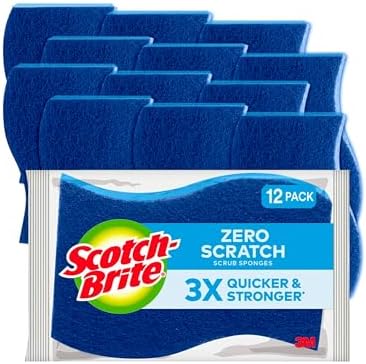 View full detailsScotch-Brite Zero Scratch Scrub Sponges 12 Kitchen Sponges for Washing Dishes and Cleaning the Kitchen and Bath Non-Scratch Sponge Safe for Non-Stick Cookware
