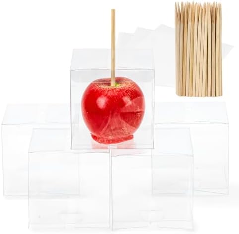 View full detailsCandy Apple Kit with Non-stick Paper 40 pack, 4" x 4" x 4", Clear Candy Apple Boxes with Hole, Caramel Apple Boxes with Sticks, Plastic Treat Boxes for Cake Pops Caramel Apples Chocolates Christmas