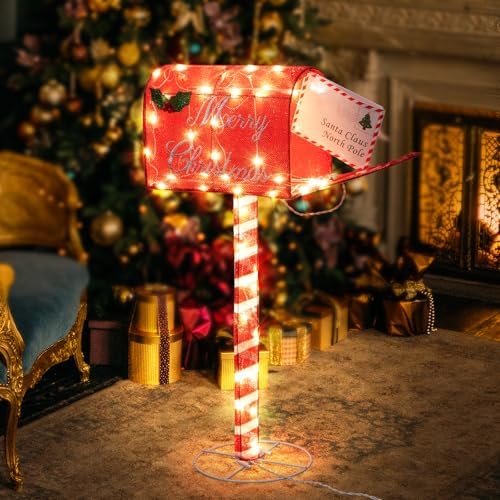 View full detailsChristmas Yard Light Decorations, 34 Inch Lighted Santa’s Mailbox Yard Decor, Xmas Red Letter Box Yard Decor, Tinsel Mailbox Christmas Decorations for Indoor Outdoor Yard (Warm White)