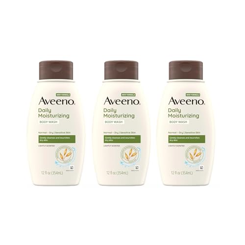 View full detailsAveeno Daily Moisturizing Body Wash, Body Wash for Dry Skin with Soothing Oat, Creamy Shower Cleanser, Gentle, Soap-Free and Dye-Free, Lightly Scented Body Wash, 33 FL OZ